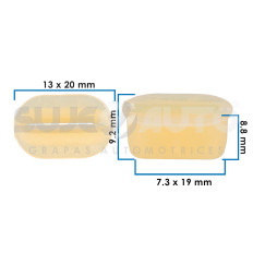 MUELA PARA PIJA CV VARIOS 50-22 50 Piezas Nylon Blanco 7.3 X 19 9/32 X 3/4 9.2 23/64 8.8 27/64 13 X 20 33/64 X 25/32 Sujeauto