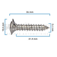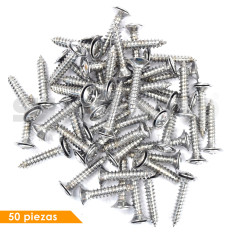 PIJA CABEZA CONICA UNIV VARIOS 50-22 50 Piezas Zinc Cromo Hoyo Mm: 3.6, 9/64 No. Tornillo:: 10, Largo Mm: 26, 1 1/32 Tallo Mm: 21.4, 27/32 Cabeza Superior Mm: 10.5, 13/32 Sujeauto