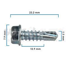 PIJA CABEZA HEXAGONAL UNIV VARIOS 50-22 25 Piezas Zinc Brillante 5.5 7/32 12 7.9 5/16 23.2 29/32 10.9 7/64 Sujeauto