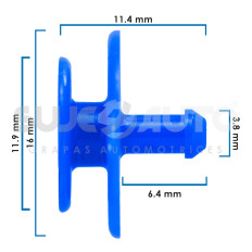 RETENEDORES HD ACCORD 03-22 25 Piezas Nylon Azul 3.8 5/ 32 11.4 29/64 6.4 1/4 11.9 15/32 16 5/8 Sujeauto