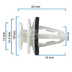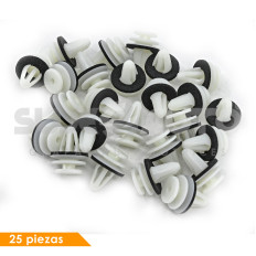 RETENEDORES BK ENCORE 13-23 CD CTS 10-14 CV CRUZE 11-16/EQUINOX 12-17/MALIBU 08-10/TAHOE 08-13/TRAX 15-23/VOLT 16-19 GM YUKON 08-13 25 Piezas Nylon Blanco 10 25/64 22 55/64 15 5/8 13 33/64 16.5 21/32 18 45/64 Sujeauto