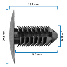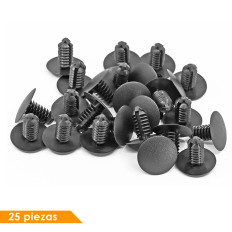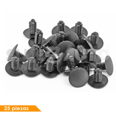 RETENEDORES VW GOLF 22-25 25 Piezas Nylon Negro Hoyo Mm: 7.9, 5/16 Largo Mm: 18.2, 23/32 Tallo Mm: 16.2, 41/64 Cabeza Superior Mm: 20.2, 51/64 Sujeauto