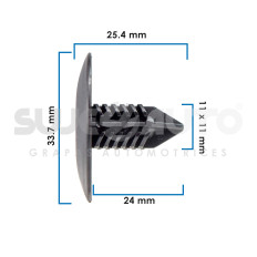 RETENEDORES NS PLATINA 02-08 25 Piezas Nylon Negro 11 X 11 7/16 X 7/16 25.4 1 24 15/16 33.7 1 21/64 Sujeauto