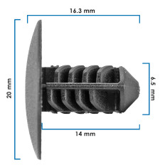 RETENEDORES HY TUCSON 22-25 Hoyo Mm: 6.5, 1/4 Largo Mm: 16.3, 41/64 Tallo Mm: 14, 35/64 Cabeza Superior Mm: 20, 25/32