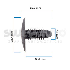 Retenedores HIACE TOYOTA 1 25.4 4 PIEZAS GRIS 9/32 7.1 57/64 22.8 Sujeauto NYLON 13/16 20.8