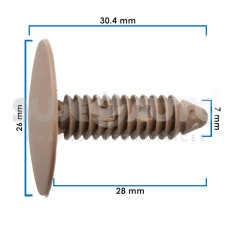 RETENEDORES UNIV VARIOS 50-22 50 Piezas Nylon Beige 7 9/32 30.4 1 13/64 28 1 7/64 26 1 1/32 Sujeauto
