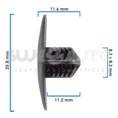 RETENEDORES UNIV VARIOS 50-22 25 Piezas Nylon Negro 8.3 X 8.3 21/64 X 21/64 11.6 26/69 11.2 7/16 25.8 1 1/64 Sujeauto
