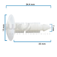 RETENEDORES UNIV VARIOS 50-22 25 Piezas Nylon Blanco 7 9/32 34.4 1 23/64 33 1 19/64 19 3/4 Sujeauto
