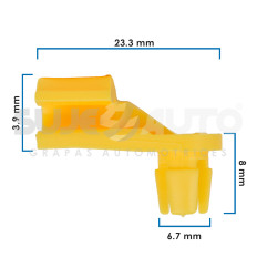 SEGUROS PARA VARILLA DE PUERTA FD MUSTANG 86-04 25 Piezas Nylon Amarillo 6.7 17/64 23.3 59/64 8 5/16 3.9 5/32 Sujeauto