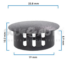 TAPONES P/INTERIORES UNIV VARIOS 50-22 50 Piezas Nylon Negro Sujeauto 19 3/4 10.30 13/32 8.90 11/32 23.80 15/16