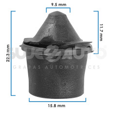 TOPE P/COFRE FD VARIOS 50-22 10 Piezas Nylon Negro 9.5 3/8 22.3 7/8 11.7 29/64 15.8 5/8 Sujeauto