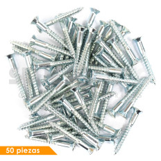TORNILLO CABEZA PLANA UNIV VARIOS 50-22 50 Piezas Zinc Brillante 4.8 3/16 10 37.7 1 31/64 35.1 1 3/8 8.9 11/32 Sujeauto