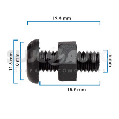 TORNILLO PORTA PLACA UNIV VARIOS 50-22 50 Piezas Nylon Negro 6.0-1.0 15/64 - 3/64 10-4.9 25/64 - 3/16 19.40 49/64 15.9 5/8 11.6 29/64 Sujeauto